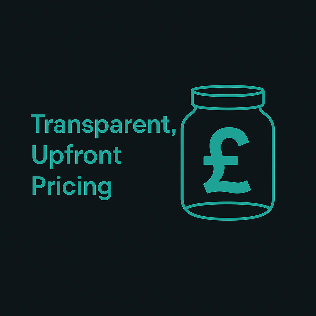 No hidden fees, no surprise invoices—just clear, fixed prices for every service. We’re the only agency where you know exactly what you’re paying for, with no long-winded sales calls or drawn-out negotiations. Pay for the job, get the job done. Simple.